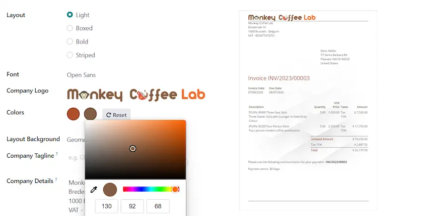 Customize your invoices according to your branding.