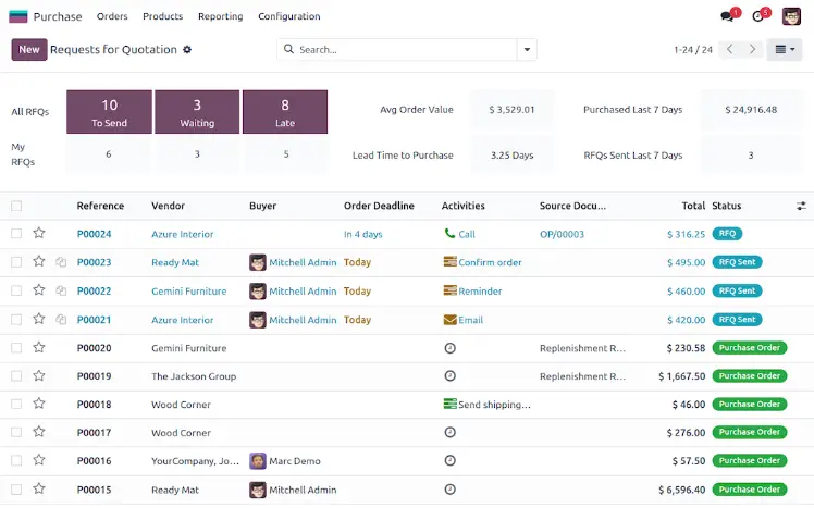 Streamline every RFQ and purchase order with automated reordering rules. Create custom rules and replenishment methods, and sync up your most important processes where it makes sense to do so — you have the power!
