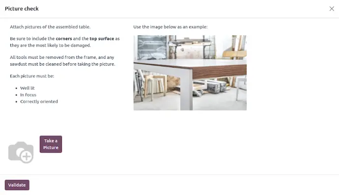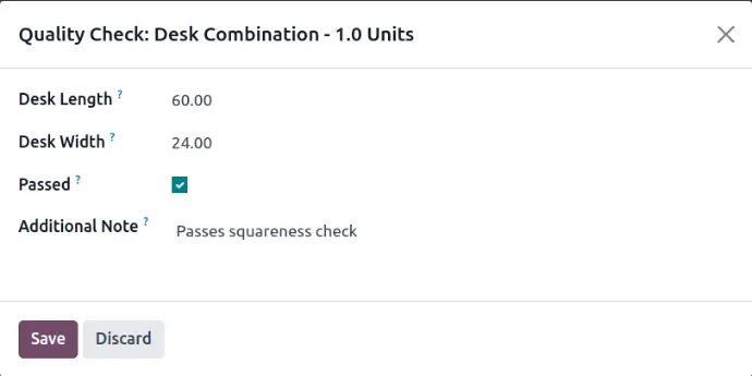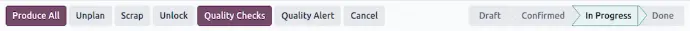 Complete quality checks directly from manufacturing or inventory orders, without opening the Quality app.
