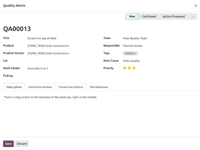 Create quality alerts to address product defects, specify root causes, and suggest corrective and preventive actions.